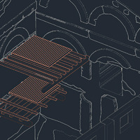 Roma, Foro Romano-Palatino, Aula Ovest: modello 3D ricostruttivo del sistema dei solai per l’edificio 1 (AutoCAD 3D) (elaborazione F. Sommaini). -