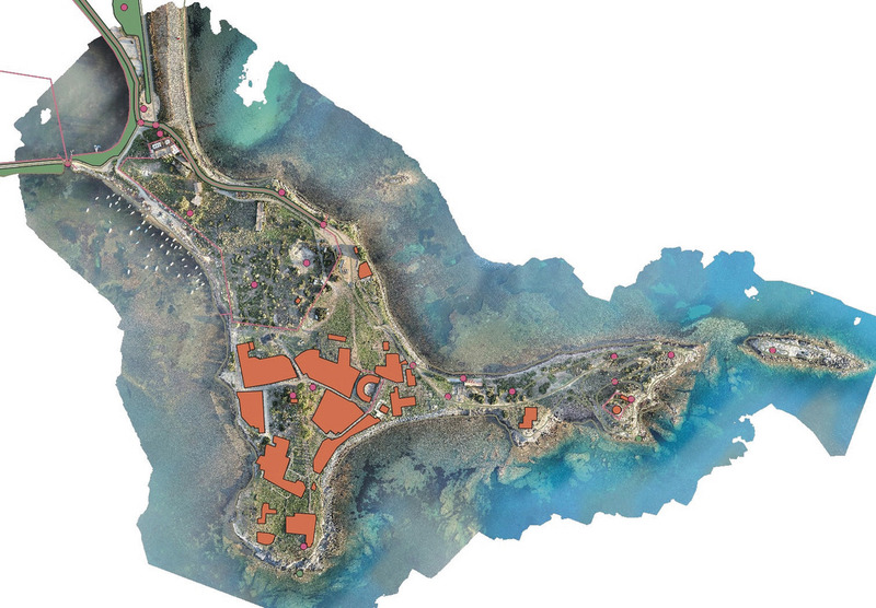 Orthophoto of the site with overlaid vector elements (excavation areas and Regional Trigonometric Vertices) of the Regional Technical Map (CTR) of Sardinia (reference system EPSG 3003)